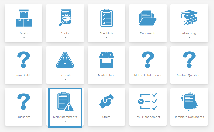 From the xCenta Essentials Dashboard, click on 'Risk Assessments'.