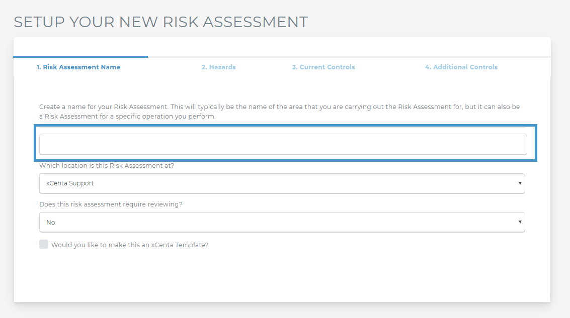 Select the location of your risk assessment. If you click the text a drop down box will load with a list of locations.