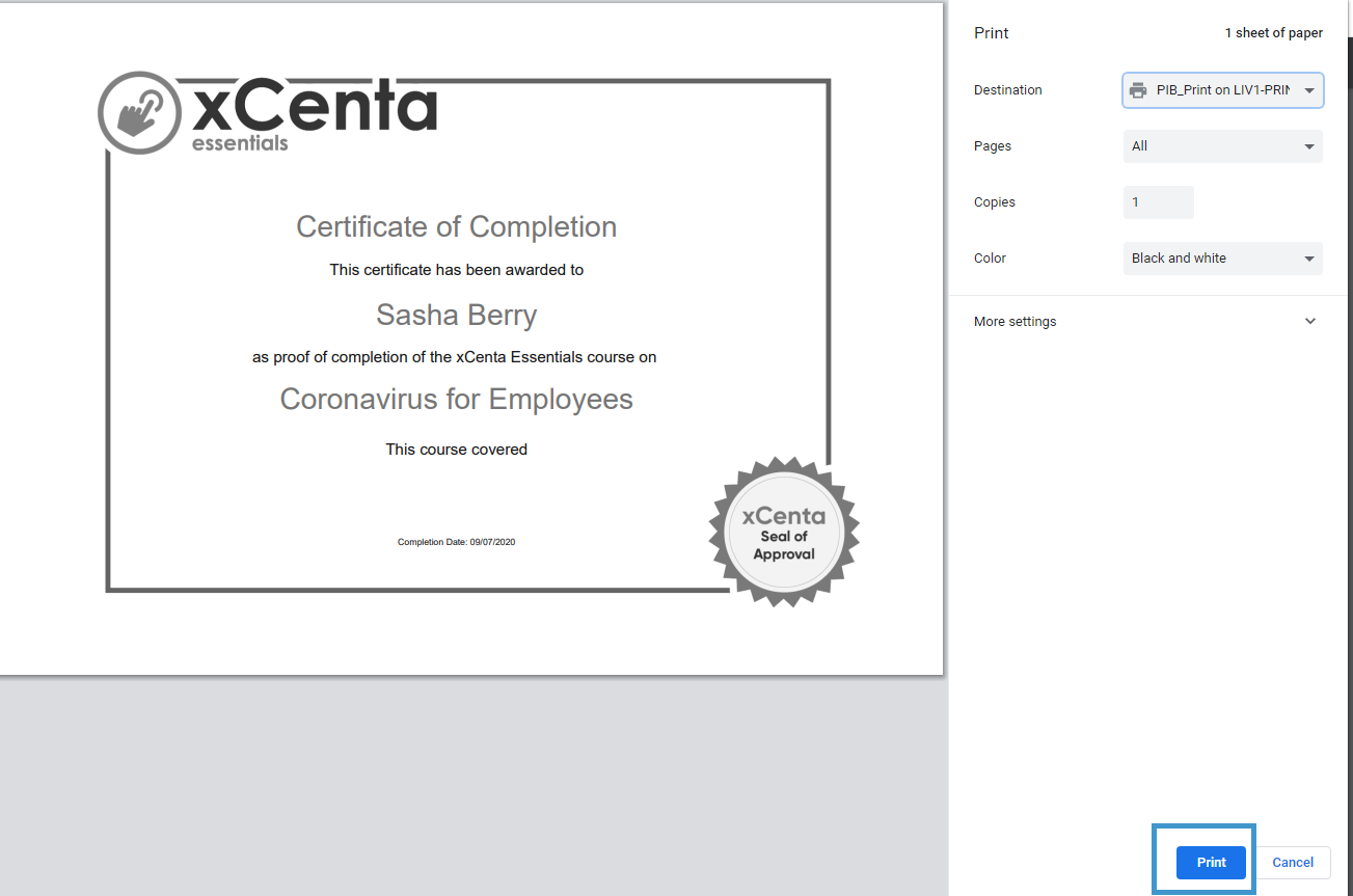 From the xCenta Essentials Dashboard, click on 'e-Learning'.